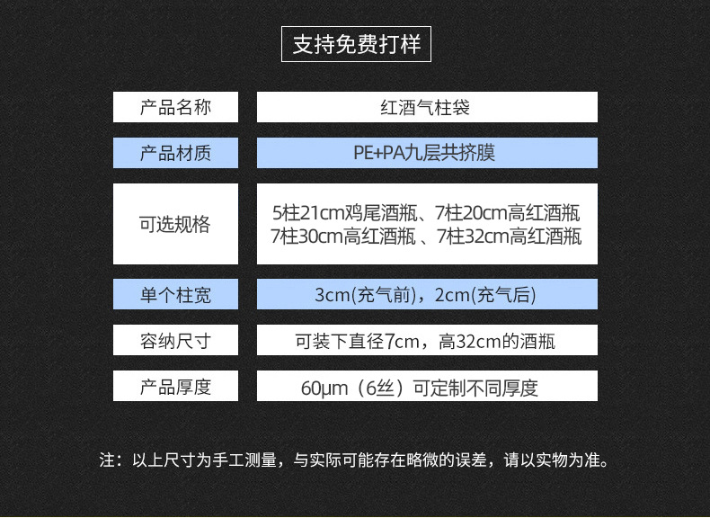氣柱袋尺寸定制/印刷logo 7柱20cm高/7柱30cm高/7柱32cm高